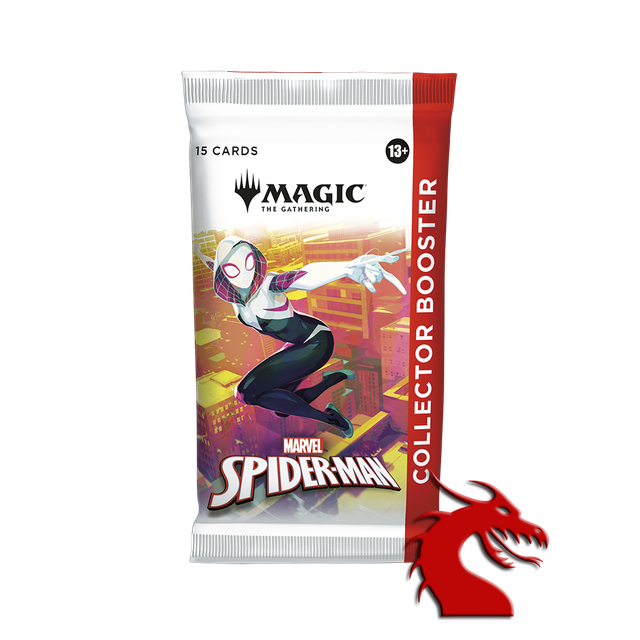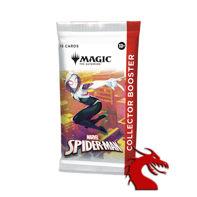 Collector Boosters gather all the coolest cards and foil treatments in one place! Each booster contains Rares and/or Mythics, Traditional Foils, a Borderless basic land, and more. Web-slinging heroes may encounter even more beautiful foils and picture-perfect lands. You could also find the headliner card—the most collectible pull of all!